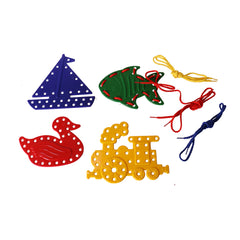 This product can be used for educational play as your child engages in an activity often found in pre-schools. Enhance learning a new skill at home. Your child can use the shapes and laces to create something new, e.g. a necklace for shape and colour matching, or they can learn to follow the instructions on an activity card to correctly...