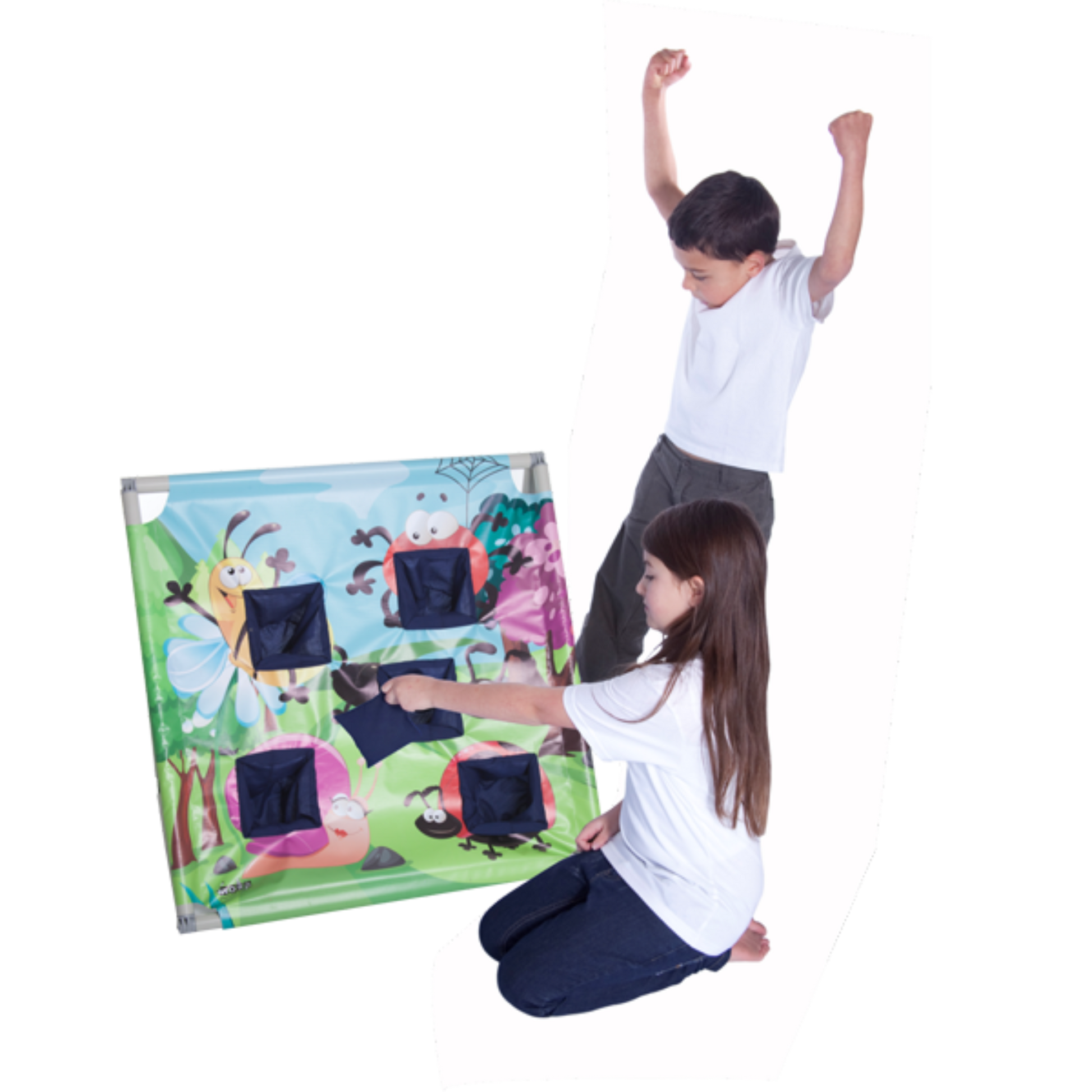 This bean bag catcher is a plastic frame with PVC fabric and holes. Perfect for hand-eye-coordination