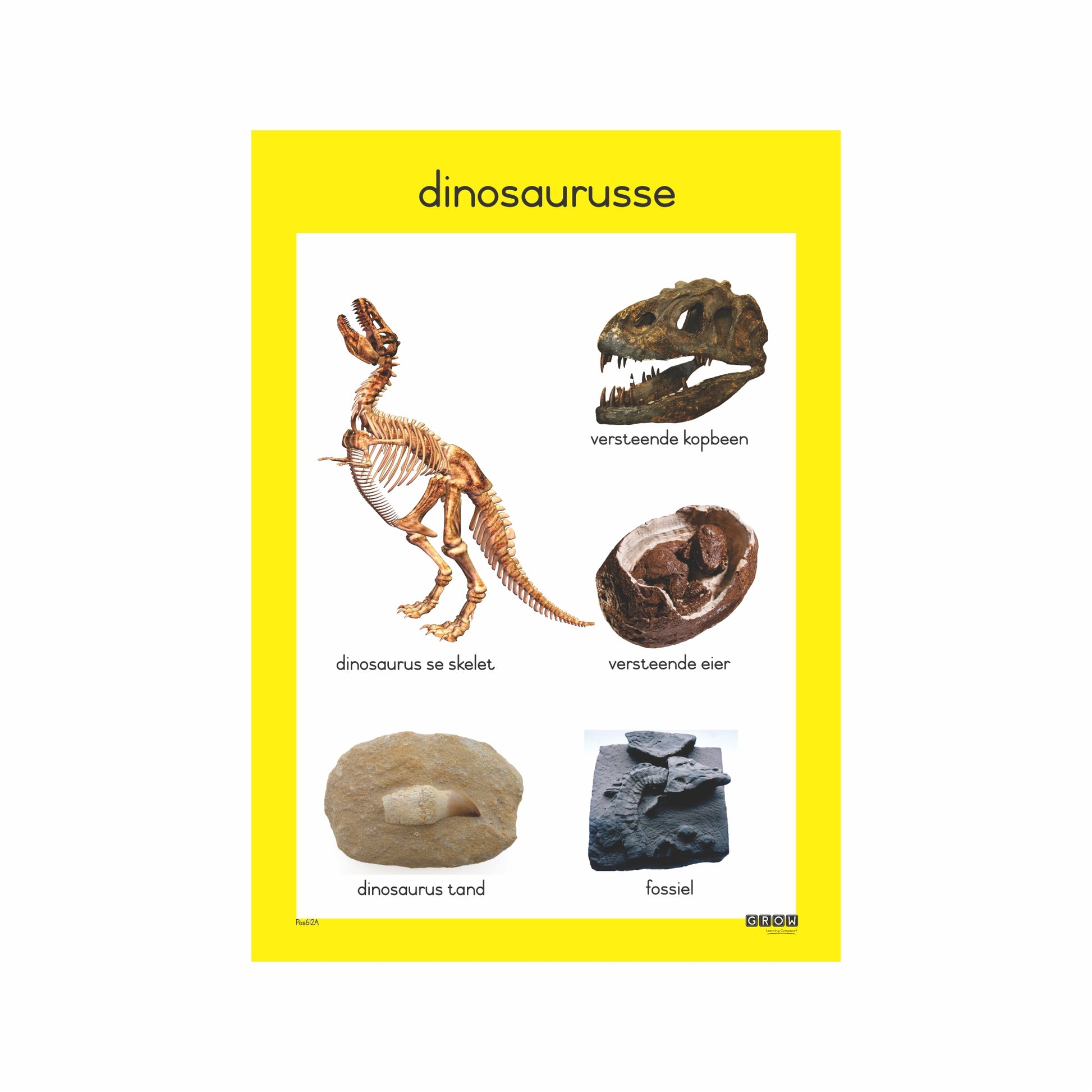 Colourful wallcharts to brighten up any environment. A must-have teacher's resource that is CAPS compliant to aid visual learning according to multiple learning topics. This wallchart addresses dinosaurs.