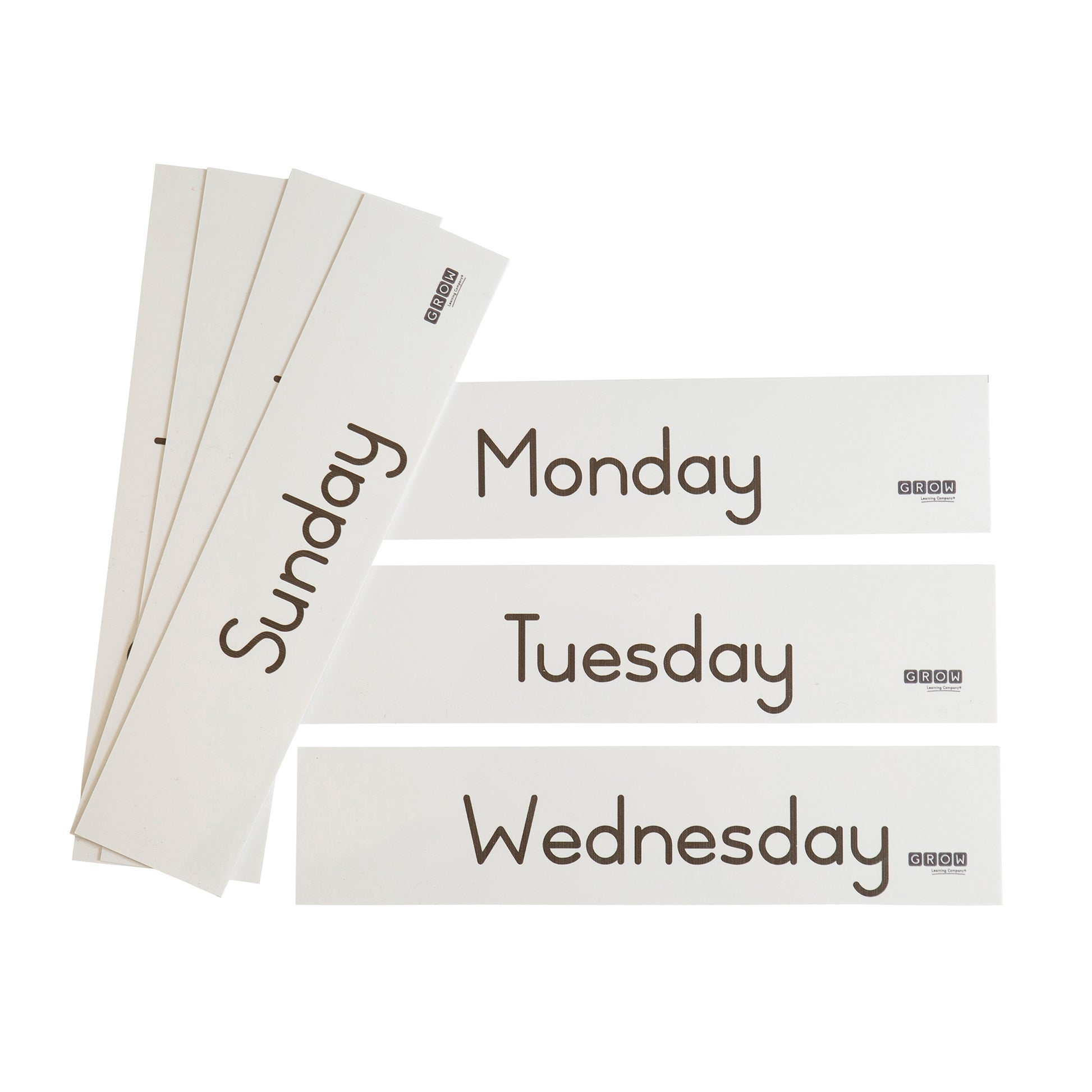 Each teacher or parent needs learning tools for reinforcement or homework.  This set of plastic strips can be used for learning and establishing the days of the week.