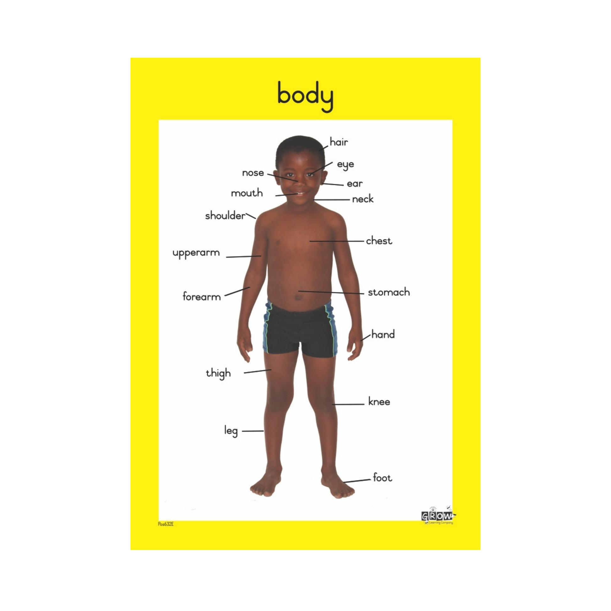 Colourful wallcharts to brighten up any environment. A must-have teacher's resource that is appropriate for the foundation phase, aiding in visual learning according to multiple learning topics. This wallchart addresses my body theme.