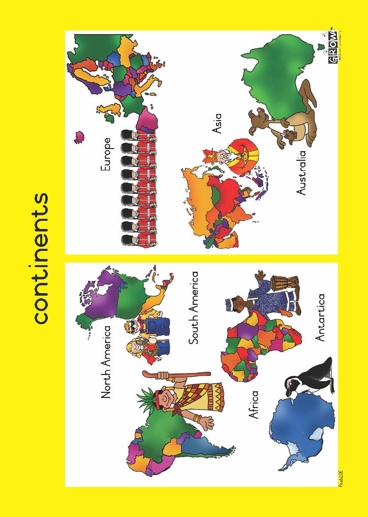 Colourful wallcharts to brighten up any environment. A must-have teacher's resource that is appropriate for the foundation phase, aiding in visual learning according to multiple learning topics. This wallchart addresses Our World.