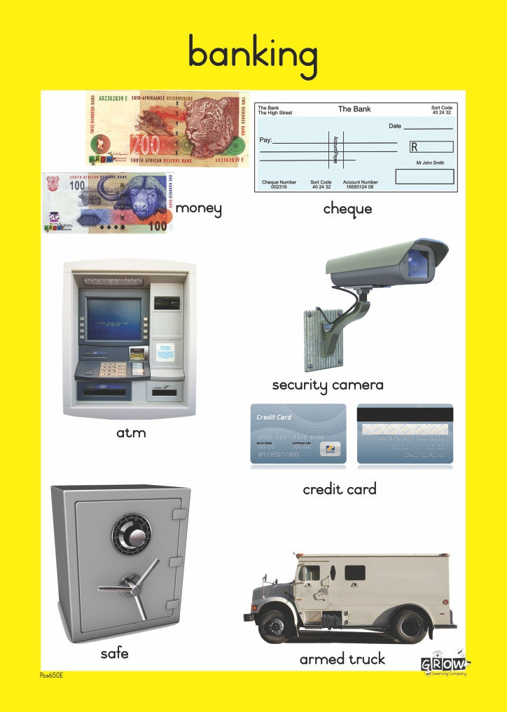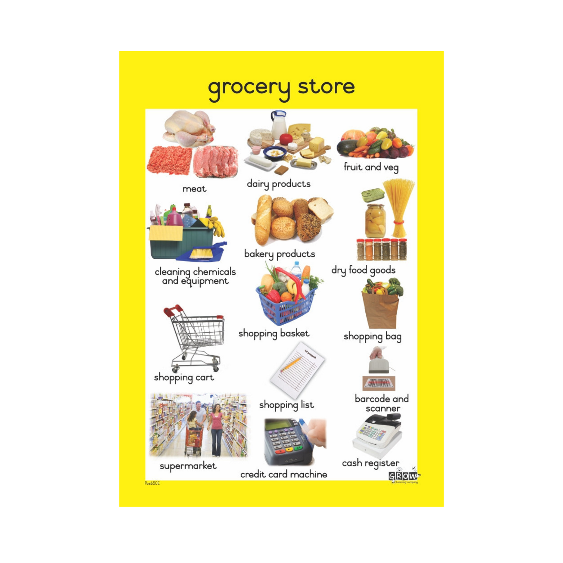 Colourful wallcharts to brighten up any environment. A must-have teacher's resource that is appropriate for the foundation phase, aiding in visual learning according to multiple learning topics. This wallchart addresses Shopping.