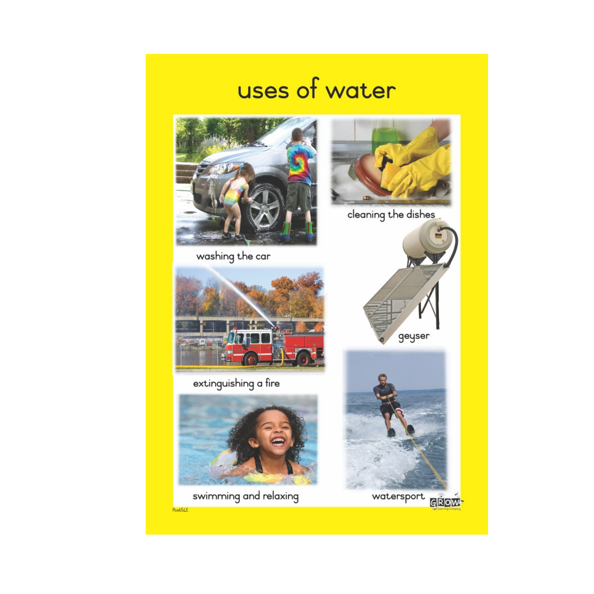 Colourful wallcharts to brighten up any environment. A must-have teacher's resource that is appropriate for the foundation phase, aiding in visual learning according to multiple learning topics. This wallchart addresses Water.