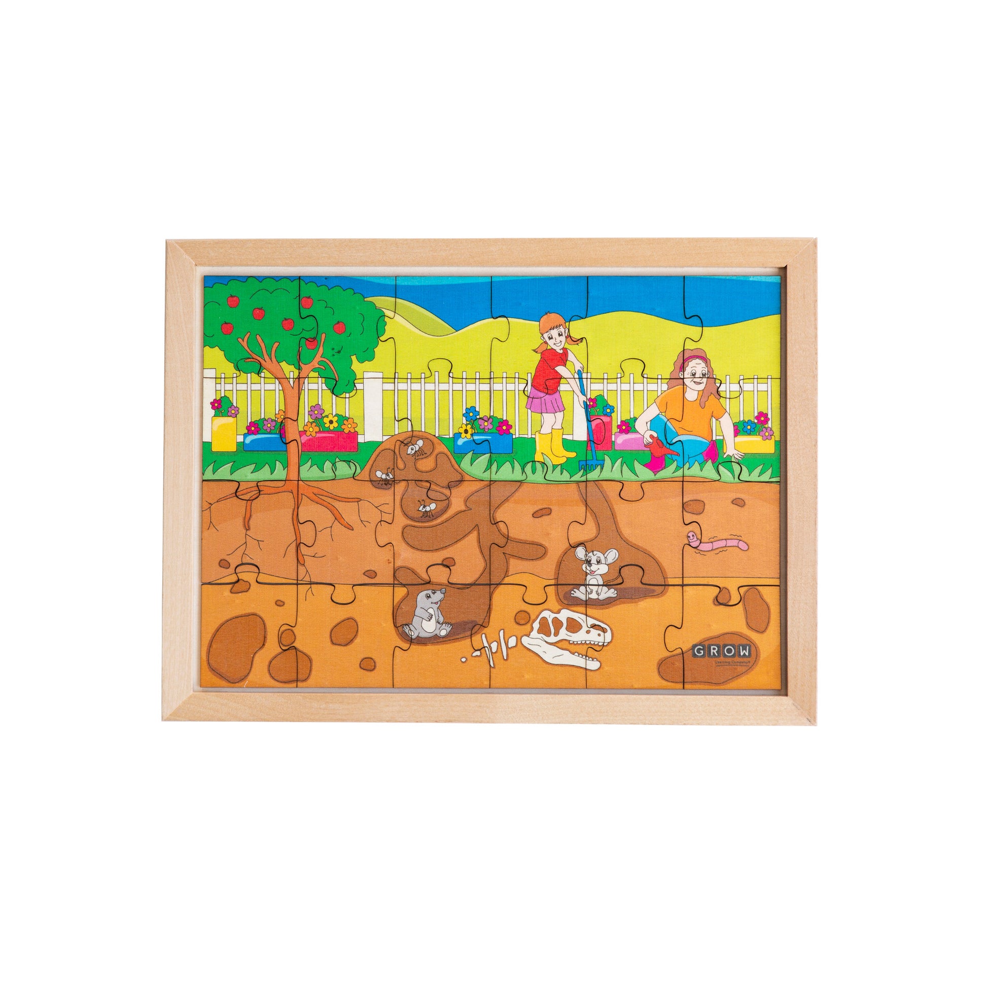 Who is creeping and crawling in your garden? Let them discover and explore as they build this 24-piece puzzle with the Above and Below the Garden theme.