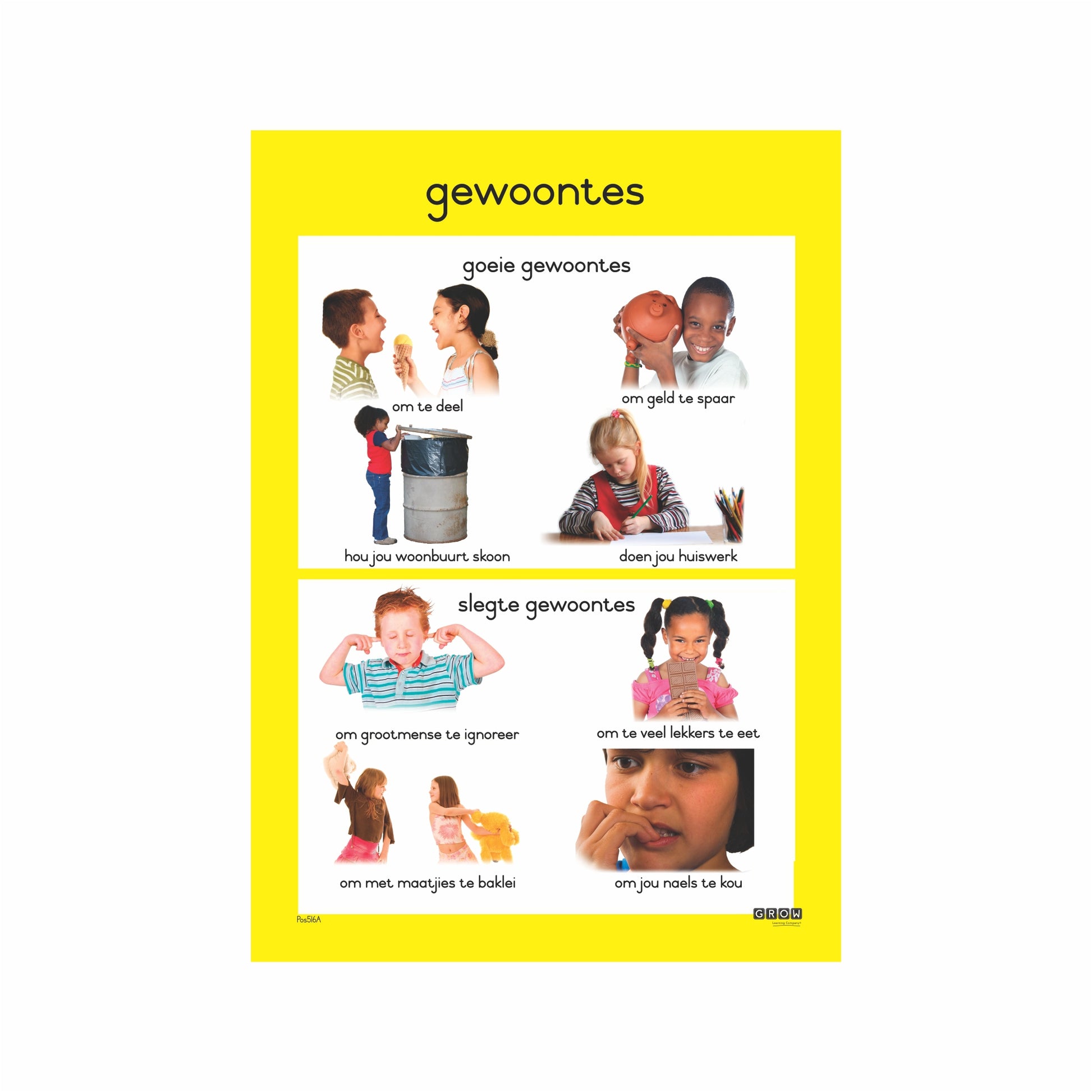 Colourful wallcharts brighten up any environment. A must-have teacher's resource aiding in visual learning according to multiple topics. This wallchart addresses habits.